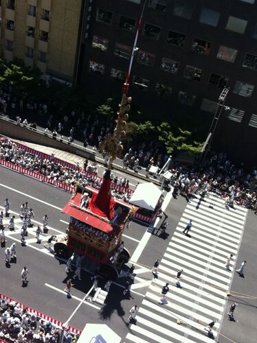 夏がきた。眩しい。 肝心の先端部分が落ちちゃいましたが先頭をゆく長刀鉾をオフィスから見ました。かっこいい。 ものすごい人集りと日差しに半ば辟易しつつお囃子のリズムを聴きながら仕事。